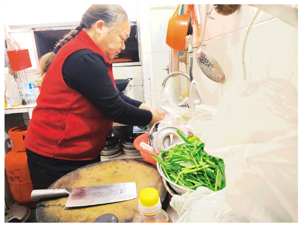 3月12日,记者拜访胡晚秀家时,她正准备给放学的小安做午饭。