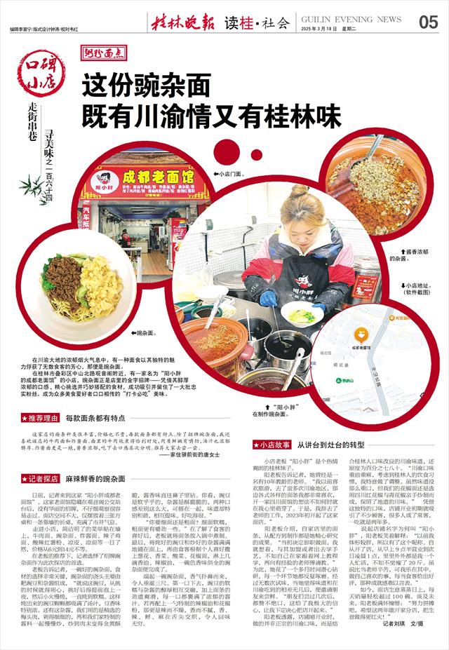 阳老板透露,店铺刚开业时,做的并非正宗的川渝口味,而是结合桂林人口味改良的川渝味道,还原度为百分之七八十。“川渝口味重油重麻,考虑到桂林人的饮食习惯,我特意做了调整。虽然味道没那么重口,但我们的花椒面还是选用四川红花椒与青花椒亲手炒制而成,保留了地道的川味。” 凭借这独特的口味,店铺开业初期就吸引了不少顾客,很多人成了常客,一吃就是两年多。