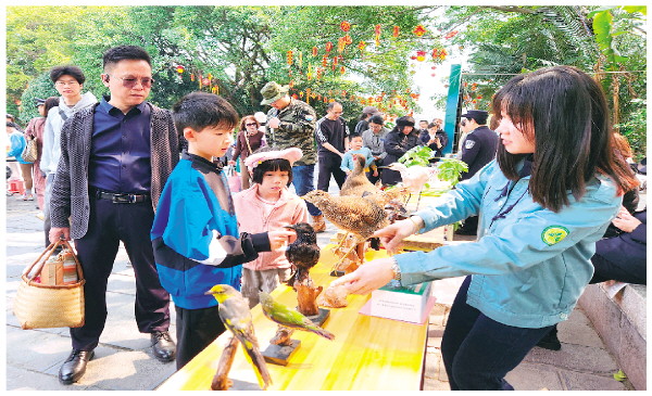 3月22日,由广西师范大学生命科学学院、市林业和园林局、珍稀濒危动植物生态与环境保护教育部重点实验室主办的“呵护天空精灵 共筑绿色好家园”2025年“爱鸟周”科普宣传活动在訾洲公园举办。现场开展了鸟类科普展览、鸟类绘画涂色、鸟类黏土手工制作、鸟类拼图等趣味科普互动活动,吸引了众多市民带着孩子踊跃参与。 记者唐霁云 摄