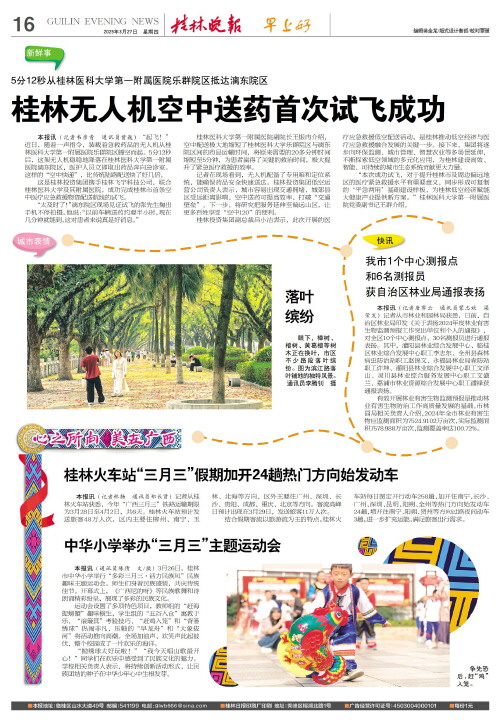 “本次成功试飞,对于提升桂林市及周边偏远地区的医疗紧急救援水平有重要意义,同步形成可复制的‘平急两用’基础建设样板,为桂林低空经济赋能大健康产业提供新方案。”桂林医科大学第一附属医院党委副书记王群介绍。