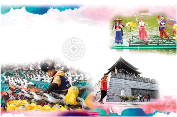 假期里,位于市区桃花江畔的刘三姐大观园景区迎来了众多游客。何思婷是该景区的一名演员,4天假期她都在工作岗位,每天早上8点半到下午5点半,她都有4轮表演,每轮表演要跑3个场地:先在对歌台水面排筏上表演,然后到三姐绣楼与游客互动,最后在三姐剧场扮演刘三姐,中途要重新化妆和换服装。“假期前两天气温比较低,我们的表演服装都不厚,但只要一到准备时间,大家立马把披在身上的羽绒服放下,把最美的歌声和舞姿呈现给游客。”何思婷说。