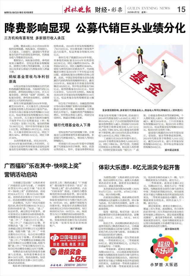 为感谢以及回馈广大购彩者对广西福彩的支持与关爱,广西福利彩票发行中心决定开展“乐在其中·快8奖上奖”的营销活动。活动时间从4月7日(第2025087期)起,直到活动总奖池少于20万元即止。活动派奖赠券金额215万元。