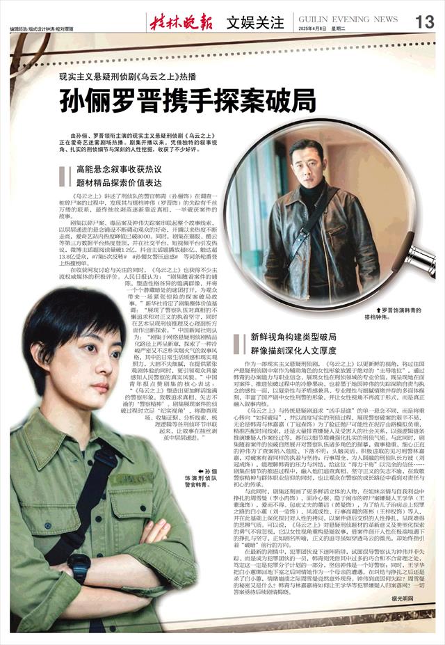 由孙俪、罗晋领衔主演的现实主义悬疑刑侦剧《乌云之上》正在爱奇艺迷雾剧场热播。剧集开播以来,凭借独特的叙事视角、扎实的刑侦细节与深刻的人性挖掘,收获了不少好评。