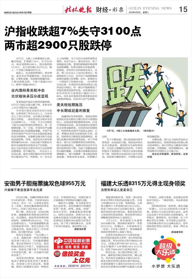 受美国政府加征关税等因素影响,4月7日开盘后A股大幅下挫,多家光伏上市公司股价也大幅走跌。