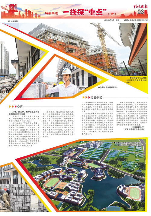 随后,记者又来到桂林设计与工程职业学院建设现场,该项目规划占地1200亩,计划总投资近30亿元,总建筑面积60万平方米,分三期建设。