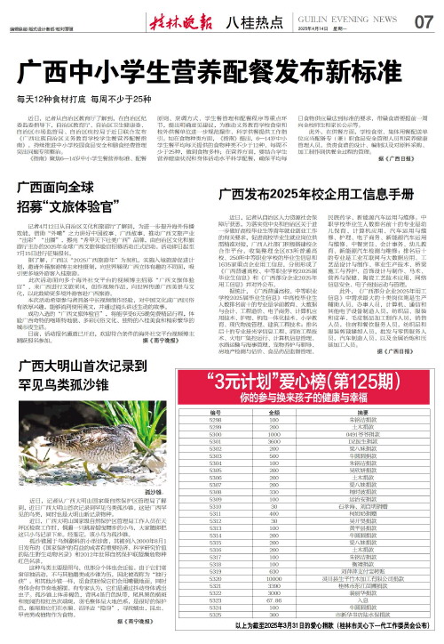 广西中小学生营养配餐发布新标准 每天12种食材打底 每周不少于25种   近日,记者从自治区教育厅了解到,在自治区纪委监委指导下,自治区教育厅、自治区卫生健康委、自治区市场监管局、自治区疾控局于近日联合发布《广西壮族自治区义务教育学校学生餐营养配餐指南》,持续推进中小学校园食品安全和膳食经费管理突出问题专项整治。