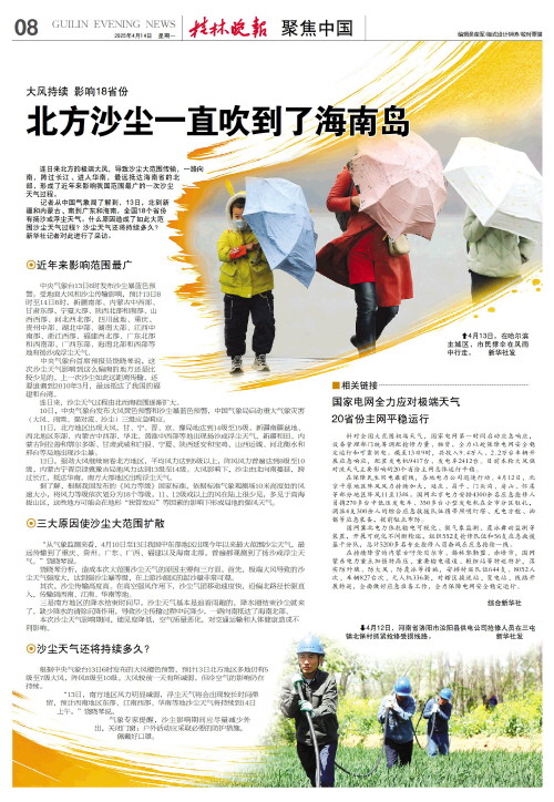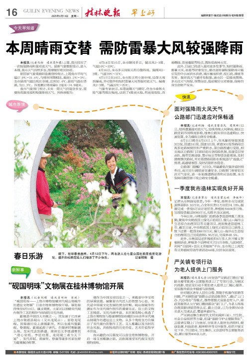 4月14日至15日,全市晴间多云。偏北风2-3级。气温14℃~33℃。