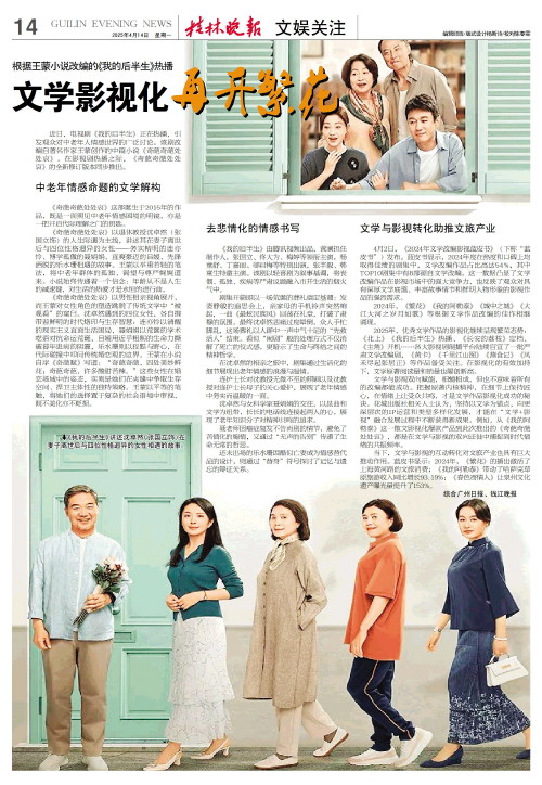 文学与影视双向赋能,相辅相成,但也不意味着所有的改编都能成功。把握原著内核精神,在细节上保持匠心,在情绪上让受众共鸣,才是文学作品影视化成功的秘诀。花城出版社相关人士认为,坚持以文学为锚点,向更深层次的IP运营和类型多样化发展,才能在“文学+影视”融合发展过程中不断获得新成果。例如,从《我的阿勒泰》这一散文影视化爆款产品到此次推出的《奇葩奇葩处处哀》,都是在文学与影视的双向迁徙中捕捉到时代情绪的共振频率。