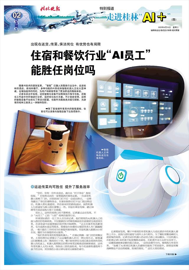 出现在送货、传菜、保洁岗位 有优势也有局限 住宿和餐饮行业“AI员工”
