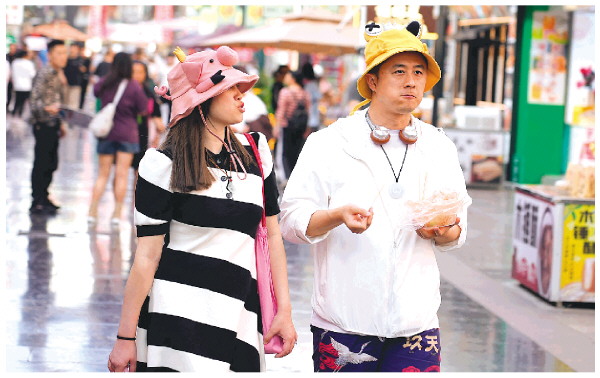 这两天,桂林天气晴好,市区最高气温超过30℃。在这炎炎烈日下,不少市民、游客穿上了防晒衣,戴上了各式各样的防晒帽,开启了防晒模式。图为4月16日下午,两位游客戴着可爱的防晒帽在正阳步行街游玩。 记者邢刚 摄