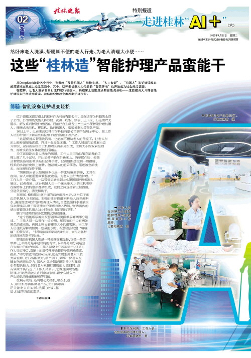 让老人躺着洗澡、帮老人重新行走、为老人清理大小便…… 这些“桂林造”智能护理产品蛮能干 上接02版