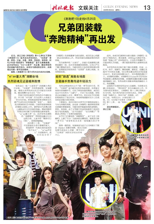 这场别开生面的发布会向大众展现:当传统文化遇上年轻表达,“国民综艺”的含金量还在上升。作为国内综艺常青IP,《奔跑吧》第十三季以传统文化为内核,结合现代科技与年轻化表达,持续传递“奔跑不止、快乐不息”的精神。4月25日起,每周五20:20锁定浙江卫视、20:50Z视介安慕希《奔跑吧》第十三季,一起“轻装上阵”!