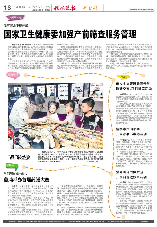 新华社北京4月21日电(记者李恒)产前筛查是预防出生缺陷的重要措施。记者21日从国家卫生健康委获悉,国家卫生健康委办公厅近日印发通知,对加强产前筛查服务提出全面规范要求,明确机构和人员资质审批主体,强调不具备资质的机构和人员不得开展产前筛查服务,并建立覆盖全流程的质量管理体系。