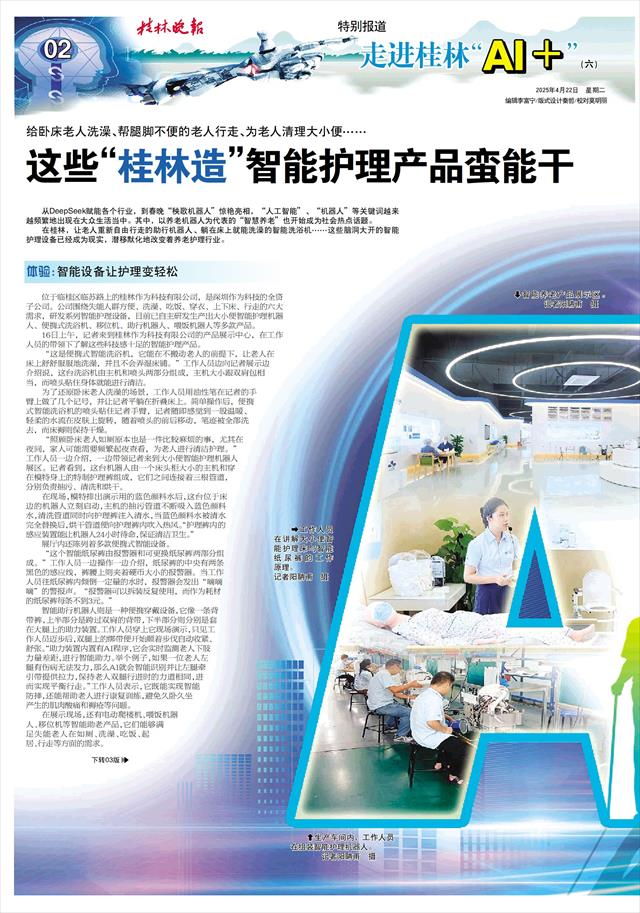 在桂林,让老人重新自由行走的助行机器人、躺在床上就能洗澡的智能洗浴机……这些脑洞大开的智能护理设备已经成为现实,潜移默化地改变着养老护理行业。