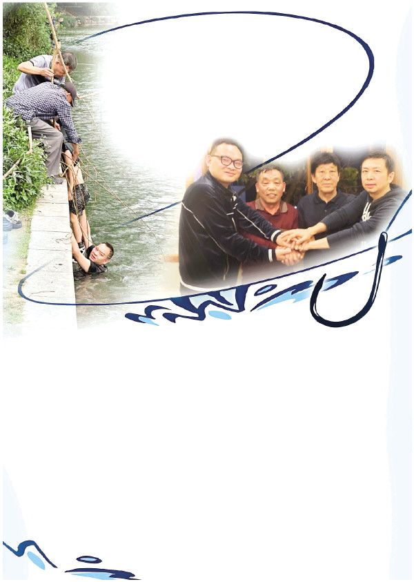 李仲初和秦小华赶紧提醒上游的钓友帮忙,让他们把鱼竿伸到落水小孩身边。