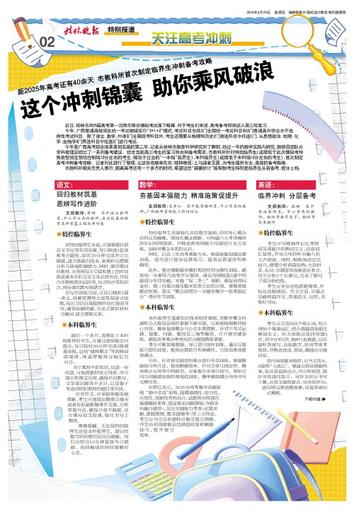 距2025年高考还有40余天 市教科所首次制定临界生冲刺备考攻略 这个冲刺锦囊 助你乘风破浪   近日,桂林市2025届高考第一次跨市联合模拟考试落下帷幕,对于考生们来说,高考备考即将进入第三轮复习。