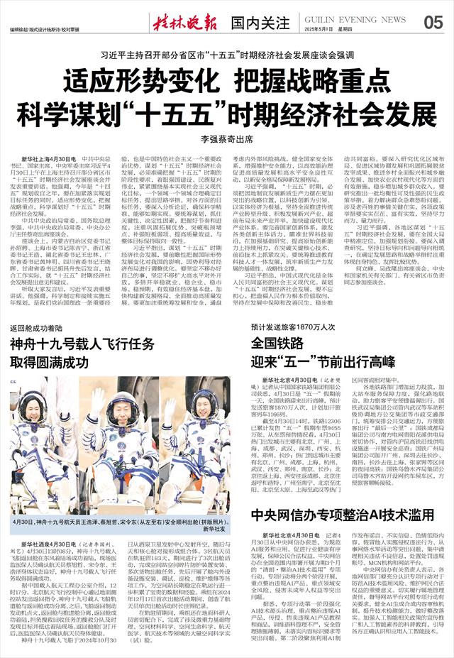 科学谋划“十五五”时期经济社会发展 李强蔡奇出席   新华社上海4月30日电 中共中央总书记、国家主席、中央军委主席习近平4月30日上午在上海主持召开部分省区市“十五五”时期经济社会发展座谈会并发表重要讲话。他强调,今年是“十四五”规划收官之年,要在加紧落实规划目标任务的同时,适应形势变化,把握战略重点,科学谋划好“十五五”时期经济社会发展。
