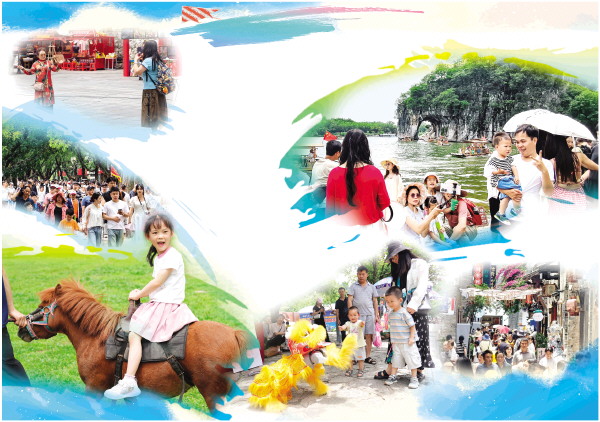 在象山景区,不少游客和桂林城徽合影,他们有的摆出不同的造型,有的身着少数民族服饰进行旅拍;在滨江路,游客在导游的带领下漫步于这条风景旖旎的林荫大道,细细品味沿途风光;在正阳东西巷,市民游客接踵而至,或与古色古香的城墙打卡留念,或穿梭于街巷间采购心仪之物;在七星公园,华夏之光广场草坪上的矮马骑行体验以及公园五福门附近的机器狗,吸引了不少小朋友的目光,穿着醒狮服装的机器狗变成萌宠,小朋友们开心地与其互动嬉戏。