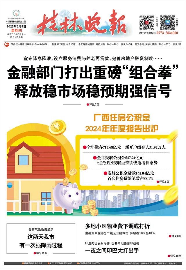 5月8日夜间到9日白天,我市阴天有暴雨、局部大暴雨,最有可能出现大暴雨以上降雨的县(市、区)有:全州(安和、东山、凤凰、蕉江、两河、石塘、咸水)、兴安(白石、崔家、高尚、华江、界首、漠川、溶江、湘漓、兴安镇、严关)、临桂(会仙、两江、临桂镇、四塘、五通、中庸)、恭城(观音、栗木、西岭)以及灵川、灌阳各乡镇和桂林市区,并伴有短时雷暴大风、冰雹等强对流天气。偏北风3~4级、阵风7~8级。