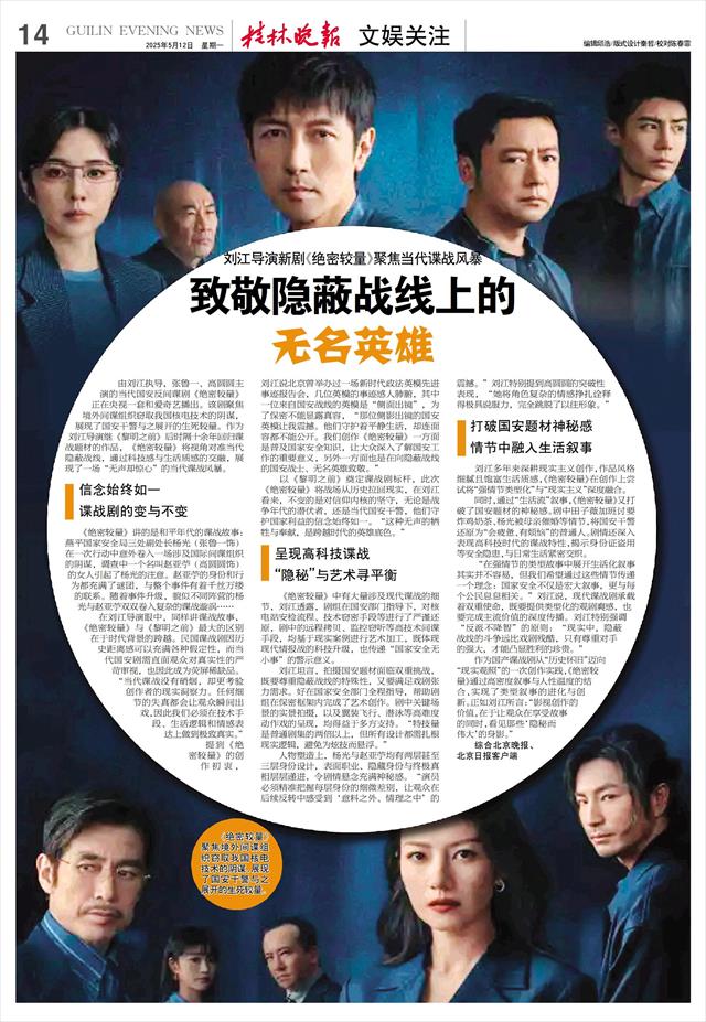 由刘江执导,张鲁一、高圆圆主演的当代国安反间谍剧《绝密较量》正在央视一套和爱奇艺播出。该剧聚焦境外间谍组织窃取我国核电技术的阴谋,展现了国安干警与之展开的生死较量。作为刘江导演继《黎明之前》后时隔十余年回归谍战题材的作品,《绝密较量》将视角对准当代隐蔽战线,通过科技感与生活质感的交融,展现了一场“无声却惊心”的当代谍战风暴。