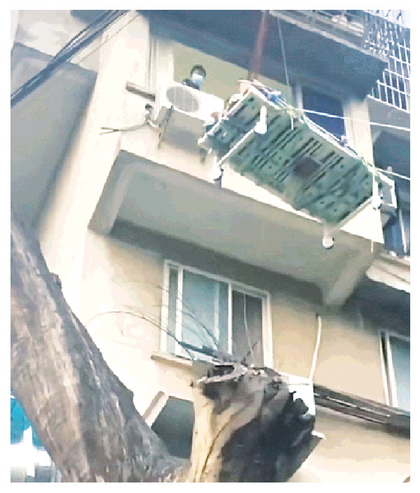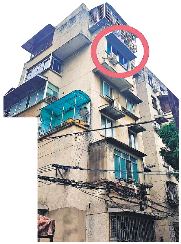 为救助陈女士的丈夫,救援人员最终从此处开窗,用吊车将患者“送”下楼。