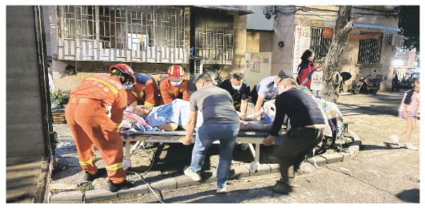 紧接着,丁志强与消防员小心翼翼地合力托住“吊床”,每一步都走得格外谨慎,确保不会对患者造成二次伤害。在大家的齐心协力下,患者被顺利抬上救护车。随后,患者被紧急送至医院,经医护人员全力救治,目前已成功止血,暂时脱离了生命危险。