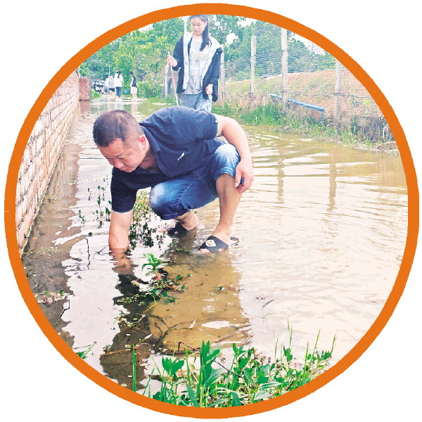 市民李先生在冷家村摸小龙虾。