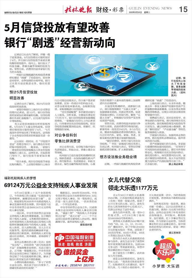 银行“剧透”经营新动向   记者近日从业内了解到,伴随一揽子政策落地,5月信贷增长可能明显好于4月,并且银行信贷投放节奏更注重均衡和质效提升。投向上,银行加大了科技金融、普惠金融等领域的投放力度;零售方面,消费贷仍是各家银行发力的主战场。
