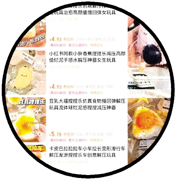 某电商平台上售卖的各种“捏捏”玩具。(网络截图)