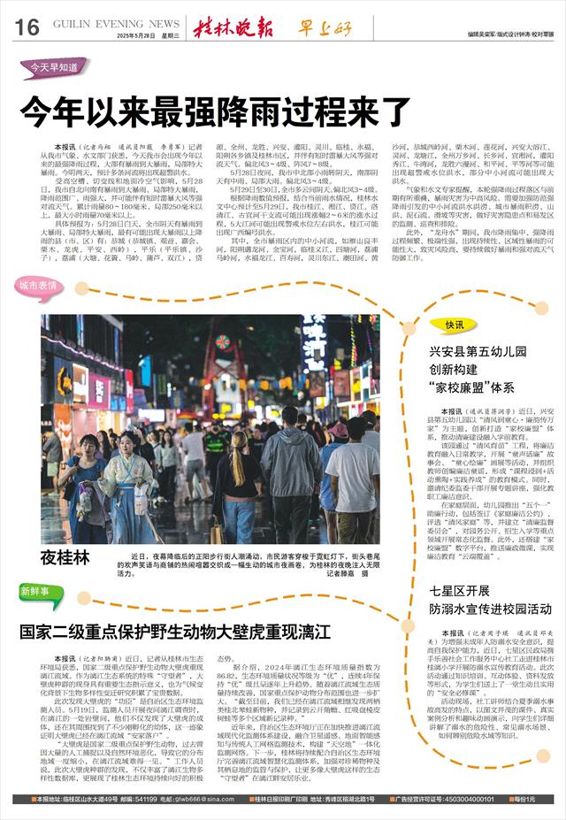 近年来,自治区生态环境厅正在加快推进漓江流域现代化监测体系建设,融合卫星遥感、地面智能感知与传统人工网格监测技术,构建“天空地”一体化监测网络。下一步,桂林将持续配合自治区生态环境厅完善漓江流域智慧化监测体系,加强对珍稀物种及其栖息地的监管与保护,让更多像大壁虎这样的生态“守望者”在漓江畔安居乐业。