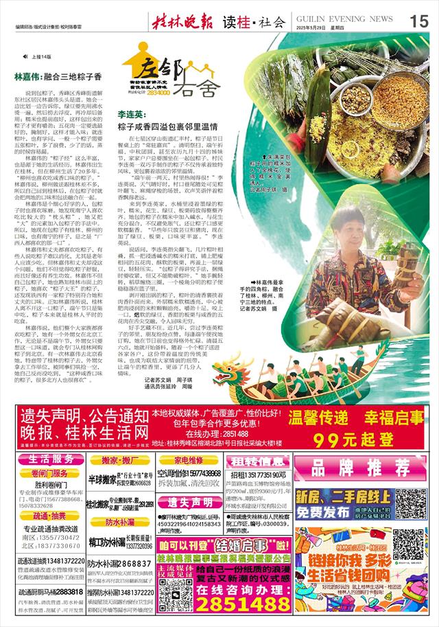 林嘉伟说,他们整个大家族都喜欢吃粽子,她有一个外甥女在北京工作,无论是不是端午节,外甥女只要想这一口味道,就会专门从桂林网购粽子到北京。有一次林嘉伟去北京看她,特意带了桂林的粽子去,外甥女拿去工作单位,被同事们哄抢一空,她自己反而没吃到,“这种咸香口味的粽子,很多北方人也很喜欢”。