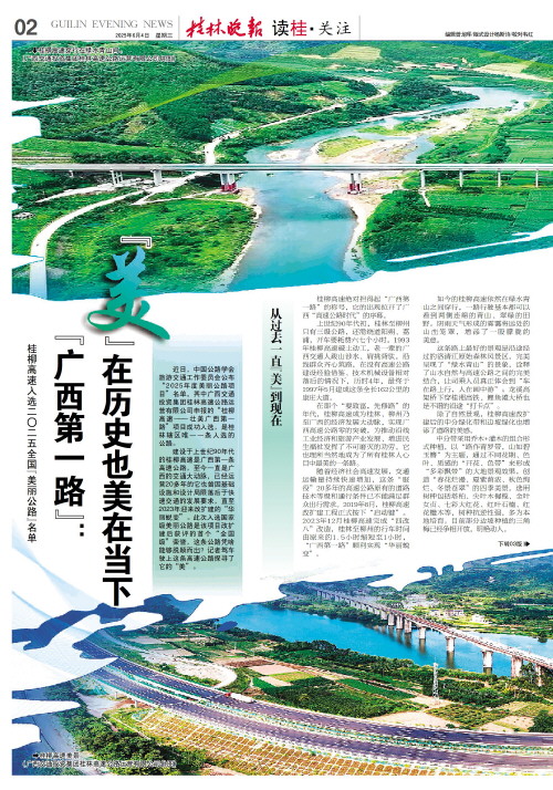 “美”在历史也美在当下   近日,中国公路学会旅游交通工作委员会公布“2025年度美丽公路项目”名单,其中广西交通投资集团桂林高速公路运营有限公司申报的“桂柳高速——壮美广西第一路”项目成功入选,是桂林辖区唯一一条入选的公路。