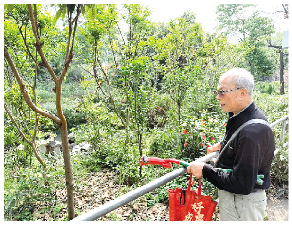 “大概20年前这里堆满了建筑垃圾,我就想着一定要把这里清理干净,让它变漂亮。”陈金明边走边指着南溪河畔的一块绿地对记者说,他将建筑垃圾清理干净后,陆续在此处种了四季桂、紫薇、三角梅、朱顶红等植物,现在每天看着这些花草,心情特别舒畅。