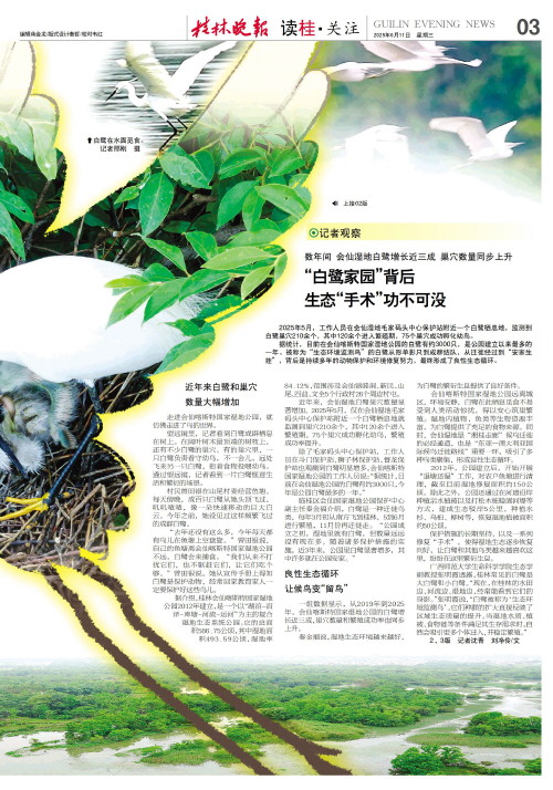 保护措施的长期坚持,以及一系列修复“手术”,使得湿地生态逐步恢复向好,让白鹭和其他鸟类越来越喜欢这里,纷纷在这里繁衍生息。