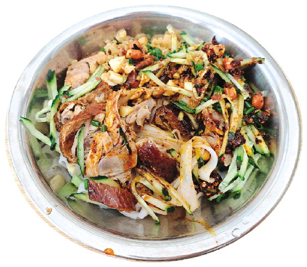 酱汁浓郁的烧鸭粉与清爽的黄瓜丝是“绝配”。