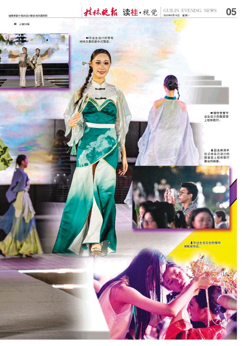 6月13日晚,在市中心广场桂林歌圩舞台上,桂林电子科技大学艺术与设计学院表演专业(服装表演与时尚设计)的毕业生们携120套“山水纹样+国潮”原创设计作品惊艳亮相,学子们设计的精美服装和他们的T台风采,给现场观众和游客留下了深刻印象。