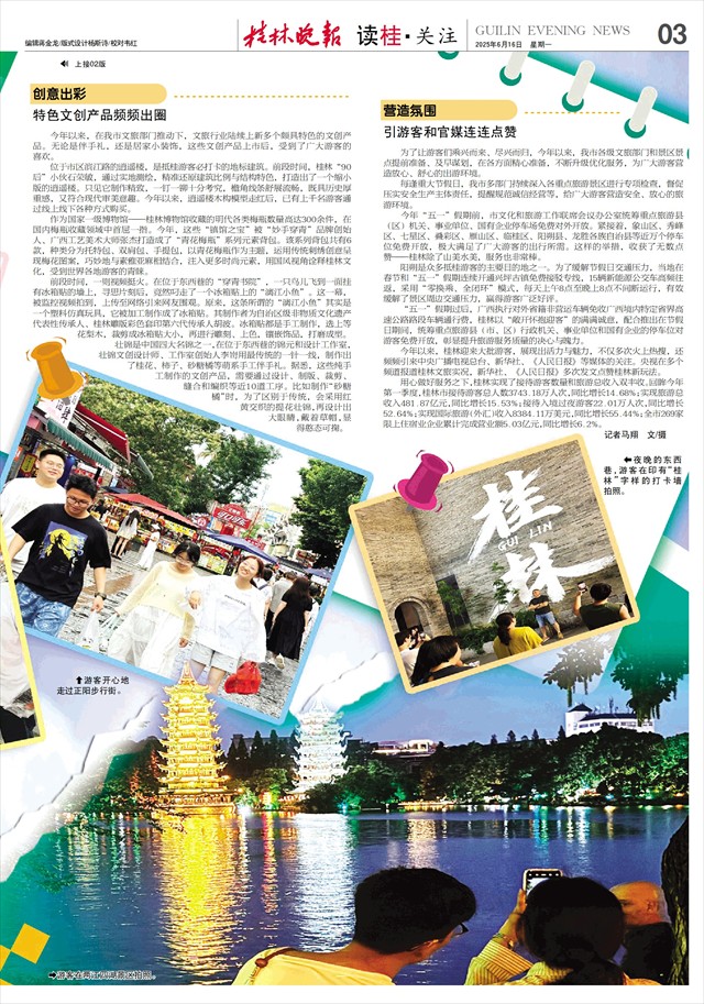 今年以来,桂林迎来大批游客,展现出活力与魅力,不仅多次火上热搜,还频频引来中央广播电视总台、新华社、《人民日报》等媒体的关注。央视在多个频道报道桂林文旅实况,新华社、《人民日报》多次发文点赞桂林新玩法。