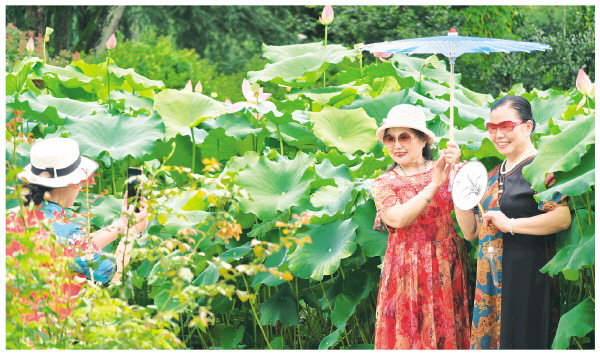 17日,西山公园内荷花竞相绽放,吸引了众多市民、游客的目光。几位市民漫步于公园之中,被荷香所陶醉,纷纷驻足打卡留影,记录下这如诗如画的美好瞬间。