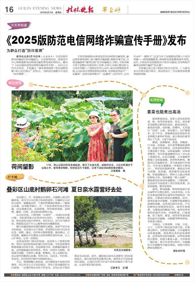 叠彩区山底村鹅卵石河滩 夏日亲水露营好去处   炎炎夏日,寻一处既能亲水纳凉,又能静心放空的露营地,成为不少市民假日休闲的选择。在叠彩区大河乡山底村,就藏着这样一个被自然眷顾的角落——鹅卵石河滩。这里毗邻漓江,在一个洄水湾处形成天然浅滩。河水清澈见底,水流舒缓,两岸绿树成荫,是烧烤、露营、钓鱼、亲水游玩的理想之地。