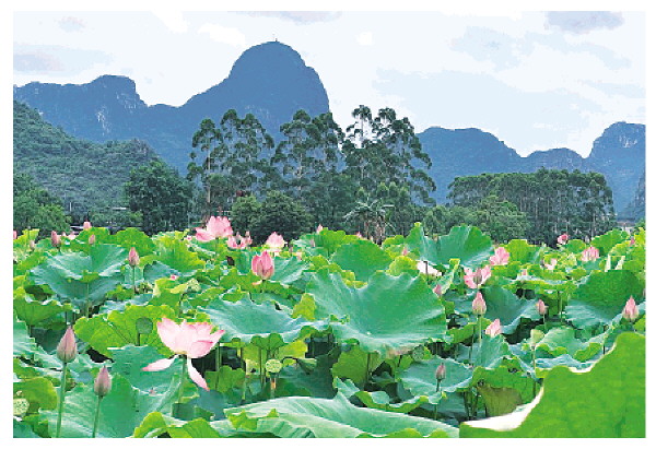 近日,灵川县定江镇莲花村委汤家村上百亩荷花迎来了盛花期。碧绿的荷叶连绵不绝,粉白相间的荷花在叶间绽放,与远处的青山相映成趣,宛如一幅浑然天成的山水画卷,吸引着众多市民纷至沓来,共赴这场夏日限定的浪漫之约。