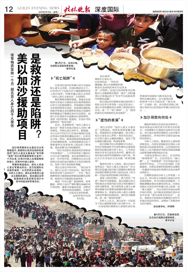美以支持的“加沙人道主义基金会”运转混乱,物资发放现场暴力频发,招致国际社会强烈谴责。联合国人权办公室发言人萨明·希坦对此表示,以方将人道主义援助武器化,违反了国际援助分配标准,构成战争罪。