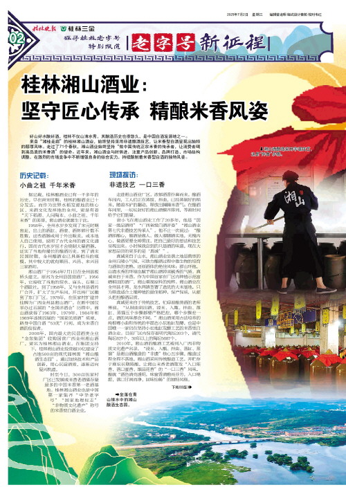 来自“湘桂走廊”的桂林湘山酒业,始终坚持采用非遗酿酒技艺,让米香型白酒呈现出独特的醇厚风味。走过了71个春秋,湘山酒业始终坚持“做中国传统正宗米香的传承者,让消费者喝到高品质的米香酒”的使命。近年来,湘山酒业与时俱进,注重产品创新、品牌打造、市场结构调整,在激烈的市场竞争中不断增强自身的综合实力,持续酿制着米香型白酒的独特风姿。
