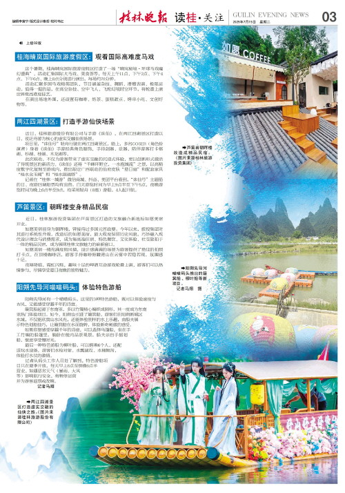 解锁新玩法   暑期,桂林陆续迎来五湖四海的游客,我市各景区景点也顺势推出不少新项目、新玩法。丰富多彩的文旅活动,增加了旅游体验,让八方游客乘兴而来,尽兴而归。