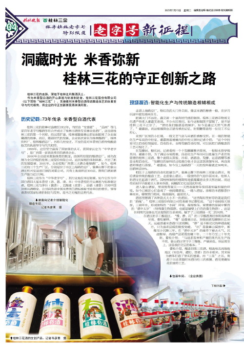 市民张先生是三花酒的忠实粉丝,他更看重其过硬的品质:“认准‘桂林牌’,认准‘桂林三花股份有限公司’出产,这绝对是品质保证。这么多年了,口感始终如一,喝得放心。”老字号的金字招牌,就体现在每一滴不变的醇香里。