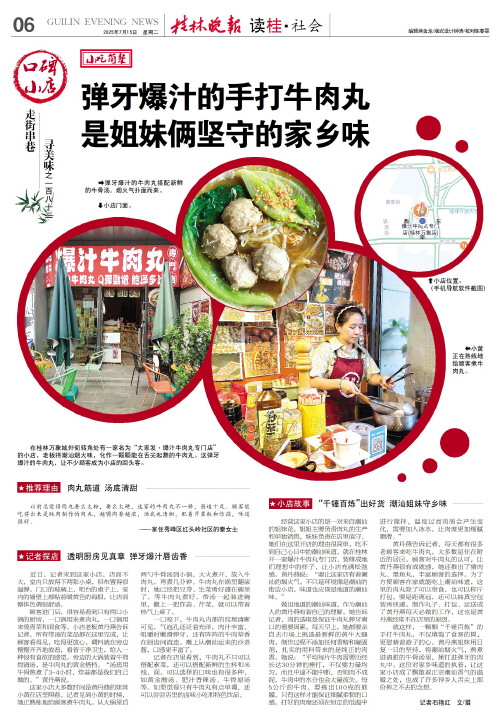 是姐妹俩坚守的家乡味   在桂林万象城外街转角处有一家名为“大家发·爆汁牛肉丸专门店”的小店,老板将潮汕烟火味,化作一颗颗能在舌尖起舞的牛肉丸。这弹牙爆汁的牛肉丸,让不少顾客成为小店的回头客。