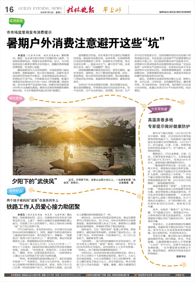 市市场监管局发布消费提示 暑期户外消费注意避开这些“坑”   本报讯(记者周子琪 通讯员莫嘉瑜)暑假期间,露营、玩水成为家长带孩子消暑的热门选择。为保障消费者权益,构建安全消费环境,近日,市市场监管局结合夏季消费特点发布提示,提醒消费者规避消费陷阱,安全舒心度夏。