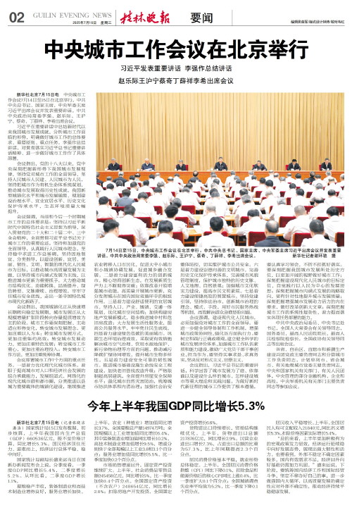 赵乐际王沪宁蔡奇丁薛祥李希出席会议   新华社北京7月15日电 中央城市工作会议7月14日至15日在北京举行。中共中央总书记、国家主席、中央军委主席习近平出席会议并发表重要讲话。中共中央政治局常委李强、赵乐际、王沪宁、蔡奇、丁薛祥、李希出席会议。
