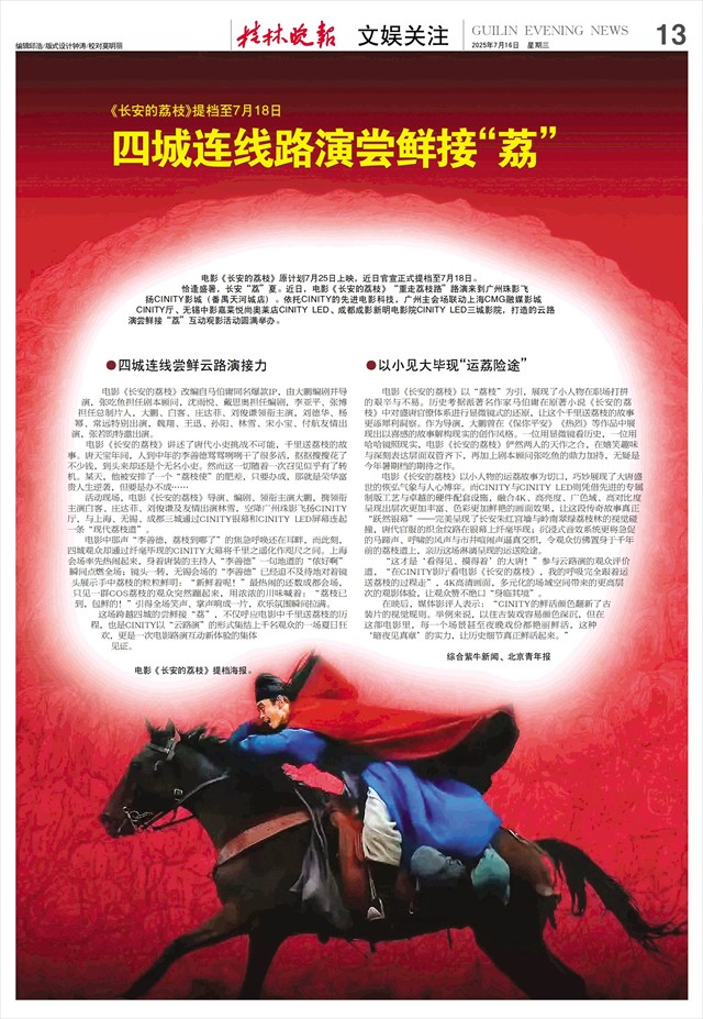 这场跨越四城的尝鲜接“荔”,不仅呼应电影中千里送荔枝的历程,也是CINITY以“云路演”的形式集结上千名观众的一场夏日狂欢,更是一次电影路演互动新体验的集体见证。