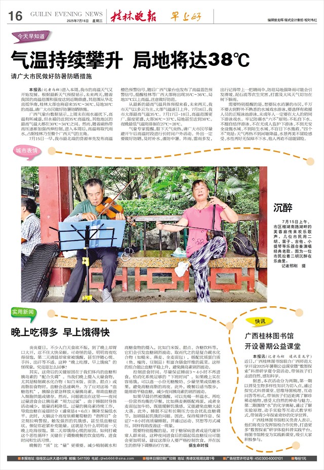 7月15日一早,我市最北端的资源率先发布高温橙色预警信号,随后广西气象台也发布了高温蓝色预警信号,提醒桂林等广西大部将出现35℃~36℃、局地37℃以上高温,注意做好防范。