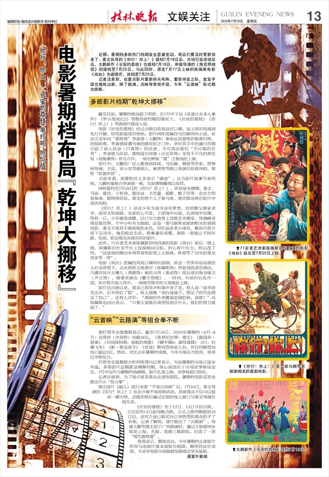 灯塔专业版数据分析师陈晋向记者表示,当前暑期档市场正逐步升温,多部影片近期紧急调整档期,核心原因在于市场竞争格局变化。7月中旬作为暑期档高峰期,影片扎堆上映,竞争将趋白热化。